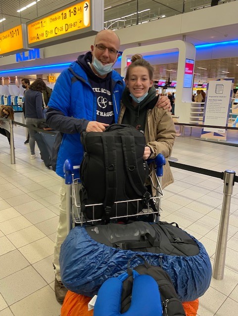 Tassen gepakt. Paar uurtjes geslapen en op weg naar Schiphol. We waren er al vroeg, rond 6.45. Maar met alle papieren en COVID checks, wilden we geen risico nemen. Nog even een broodje op schiphol en dan weg.....
