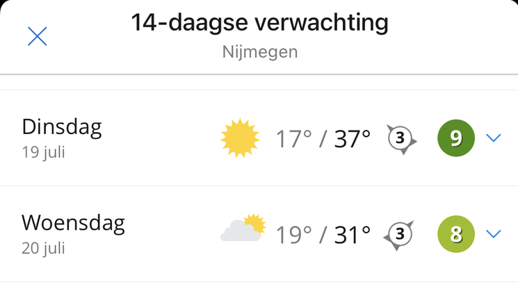 37 graden voorspeld…