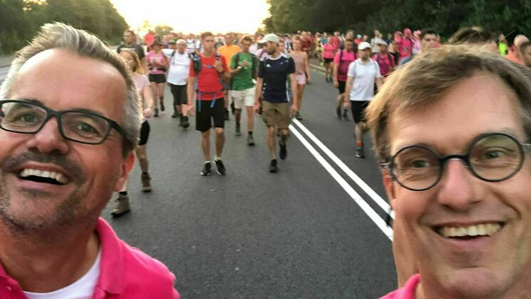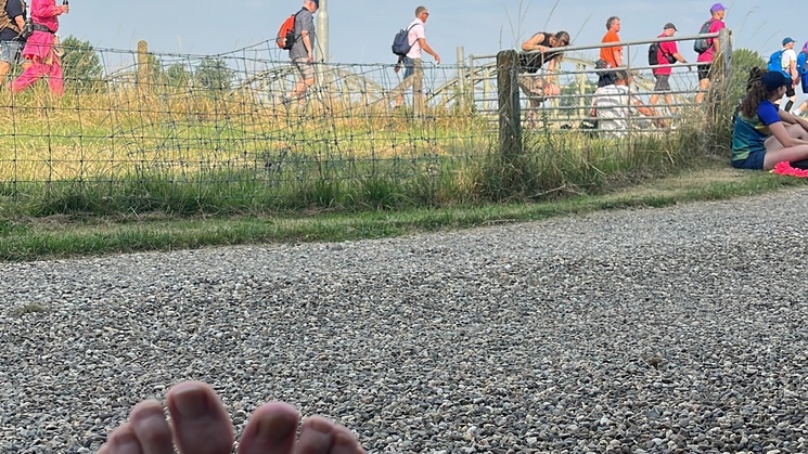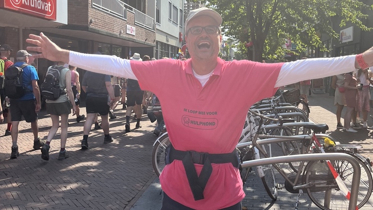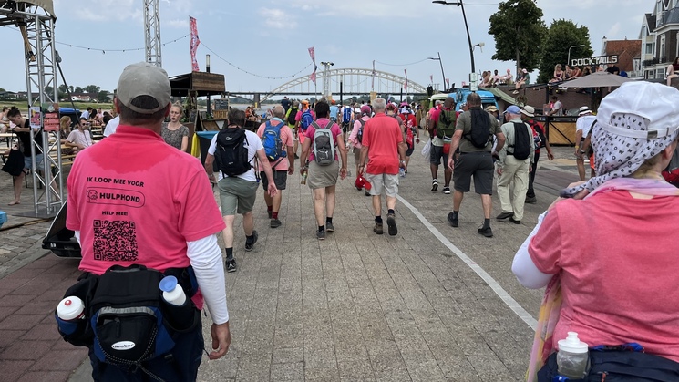 De eerste wandeldag zit er op. En wat een feestje was dat zeg! Prachtig weer, super sfeer, veel bekenden langs de route en tot slot: nog een aantal donateurs voor Hulphond geworven in het publiek! Menno heeft z'n grens verlegd in Wijchen en ik heb m'n record 'waterintake op één dag' denk ik wel gebroken. Morgen wordt het minder warm en gaan we de Zevenheuvelen doen: zin in!